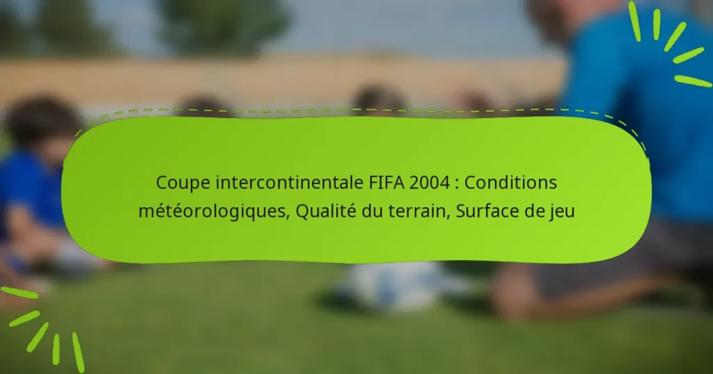 La Coupe Intercontinentale de la FIFA 2004 a été marquée par des conditions météorologiques variées qui ont eu un impact significatif sur la dynamique du match. La qualité du terrain en gazon naturel, associée à des facteurs tels que la température et l’humidité, a joué un rôle crucial dans l’influence sur la performance des joueurs et le déroulement global du jeu. Key sections in the article: Toggle Quelles étaient les conditions météorologiques pendant la Coupe Intercontinentale de la FIFA 2004…