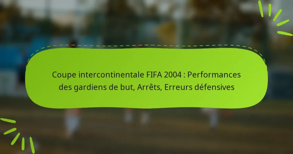 La Coupe intercontinentale de la FIFA 2004 a mis en lumière le rôle crucial des gardiens de but à travers des performances exceptionnelles qui ont façonné les résultats du tournoi. Des arrêts clés ont non seulement préservé des avantages, mais ont également modifié l’élan, tandis que des erreurs défensives ont créé des opportunités critiques pour les adversaires, influençant finalement la dynamique et les résultats des matchs. Key sections in the article: Toggle Quelles ont été les performances clés des gardiens…