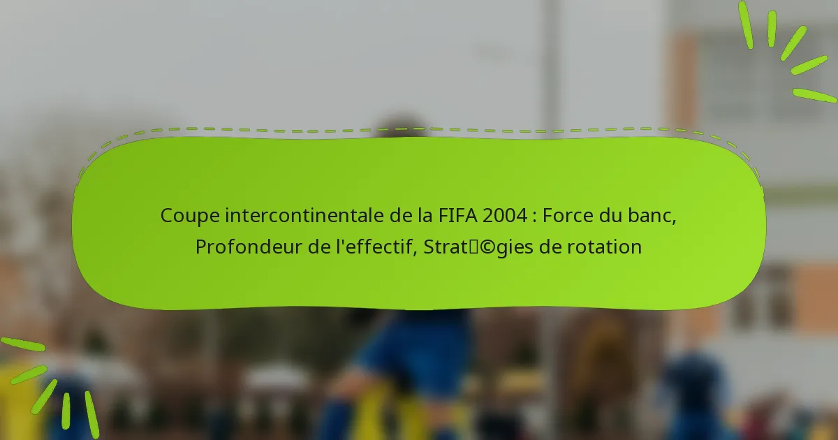 Qu’est-ce que la profondeur de banc dans le contexte de la Coupe intercontinentale de la FIFA 2004 ?