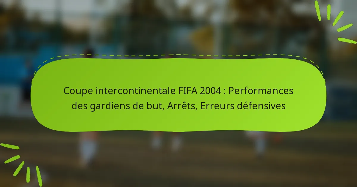 La Coupe intercontinentale de la FIFA 2004 a mis en lumière le rôle crucial des gardiens de but à travers des performances exceptionnelles qui ont façonné les résultats du tournoi. Des arrêts clés ont non seulement préservé des avantages, mais ont également modifié l’élan, tandis que des erreurs défensives ont créé des opportunités critiques pour les adversaires, influençant finalement la dynamique et les résultats des matchs.