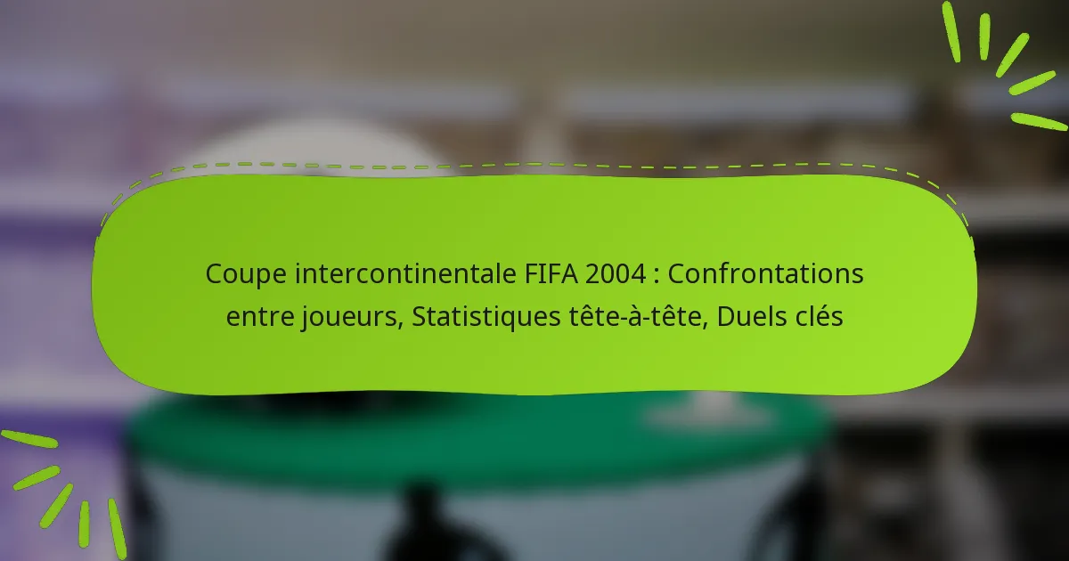 La Coupe intercontinentale de la FIFA 2004 a présenté des affrontements décisifs entre les joueurs qui ont significativement influencé le résultat du match. Des joueurs clés des deux équipes ont montré leurs compétences, impactant les métriques de performance et la dynamique globale de l’équipe.