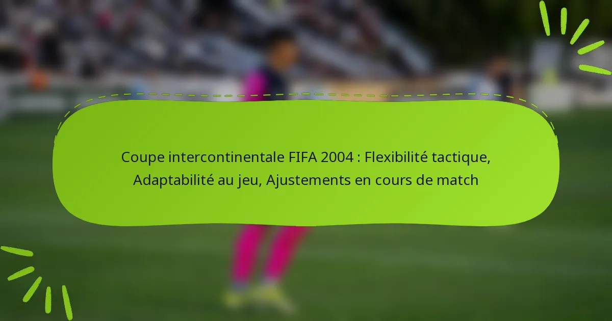 La Coupe intercontinentale de la FIFA 2004 a mis en évidence l’importance de la flexibilité tactique et de l’adaptabilité dans le football. Les équipes ont démontré leur capacité à ajuster les formations et les stratégies en temps réel, répondant efficacement à la nature dynamique des matchs. Les entraîneurs ont joué un rôle clé dans la mise en œuvre de ces ajustements en cours de match, ce qui a finalement influencé les résultats des rencontres.