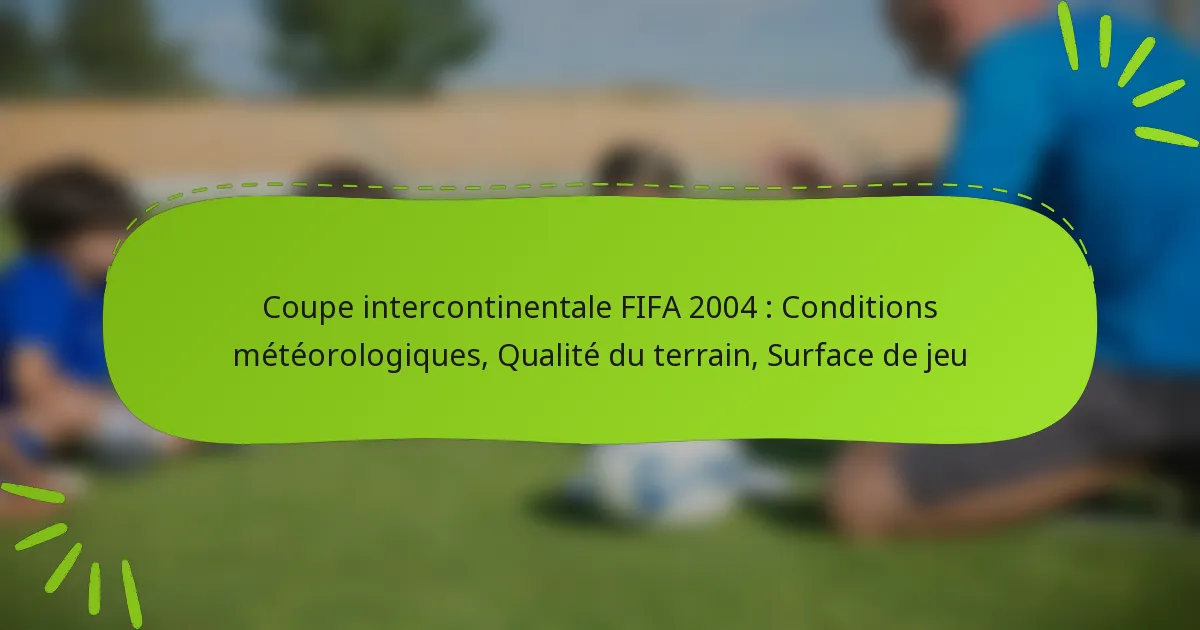 La Coupe Intercontinentale de la FIFA 2004 a mis en évidence l’impact significatif des conditions météorologiques, de la qualité du terrain et de la surface de jeu sur la performance du match. Comprendre ces facteurs peut aider les équipes à mieux se préparer pour les futures compétitions.